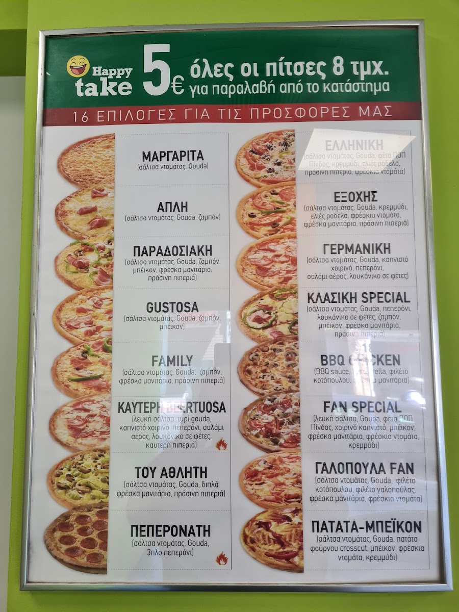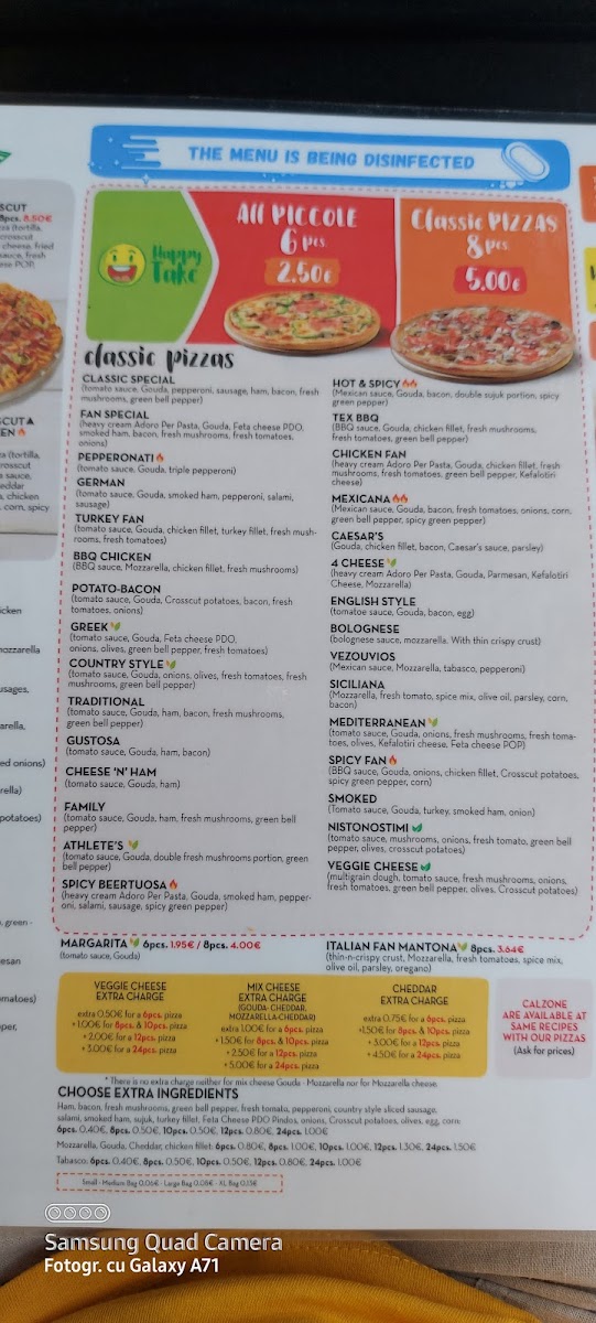 Welcome to Pizza Fan, a delightful pizzeria located at Skalidi 77 in Chania, Greece. Known for its quick takeout and delivery options, this spot has won the hearts of many pizza lovers. With a tempting menu that includes classic pizzas, vegan options, tantalizing pasta, and even Greek specialties, there's something for everyone.